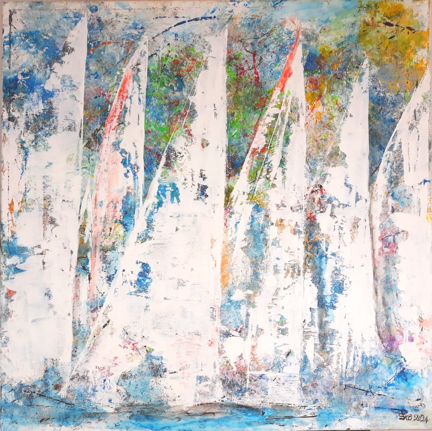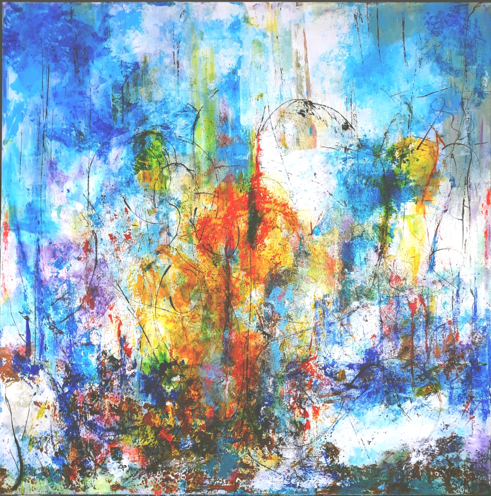 Well, I describe my art as Abstract in style, I use this word because it’s the biggest “mess” of colours on canvas and I piece it together like puzzles, sometimes also containing representational elements and occasionally appearing tendencies towards the “Abstract Expressionism”when I feel the urge to begin a new painting. Out of that “mess”, I hardly ever know how it will finally look and I only have the feeling of colours in me. My paintings sometimes take only couple of hours or may even take me several days and sometimes even total over painting following a totally different direction and when it comes to an end it’s a story with an infinite possibilities.