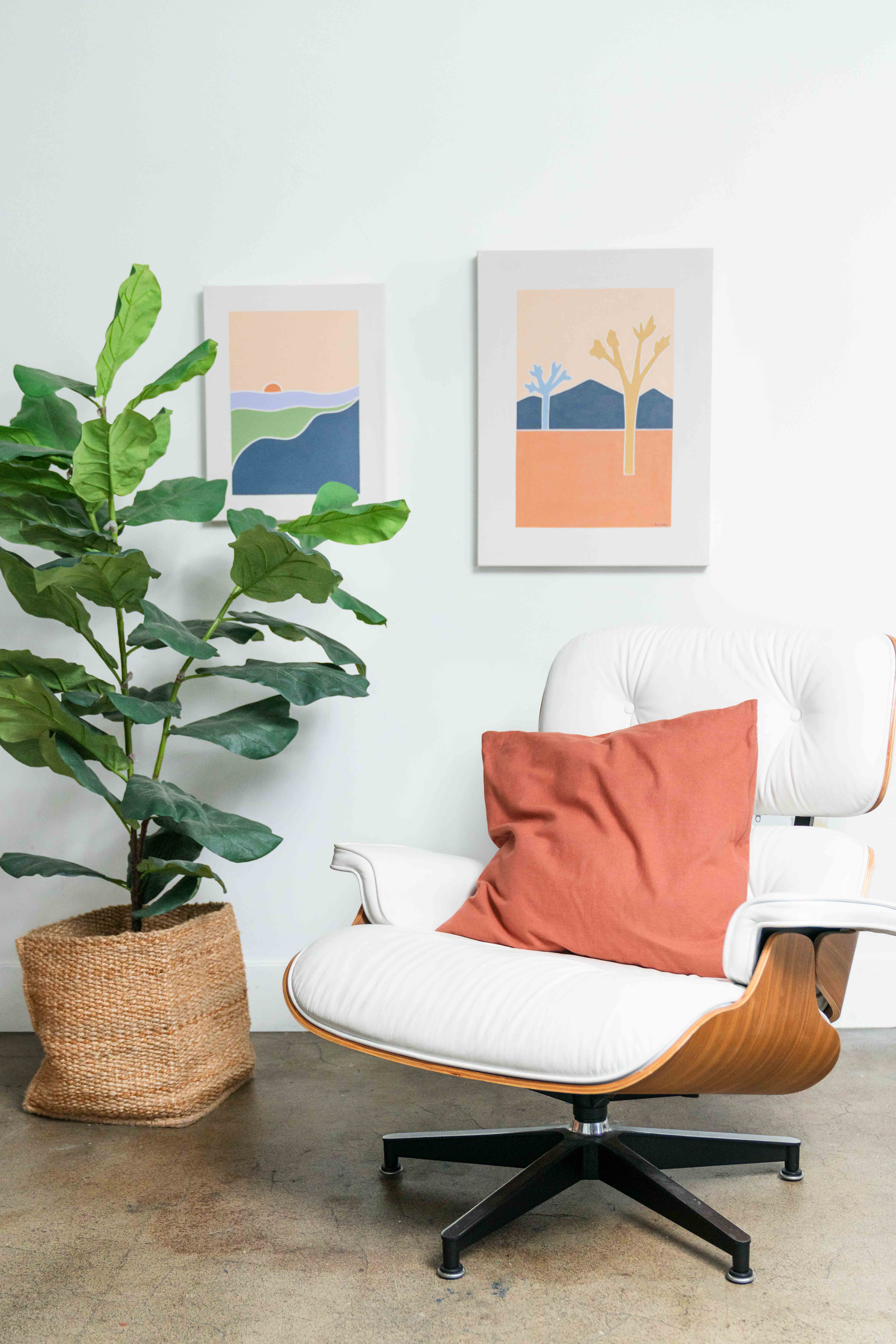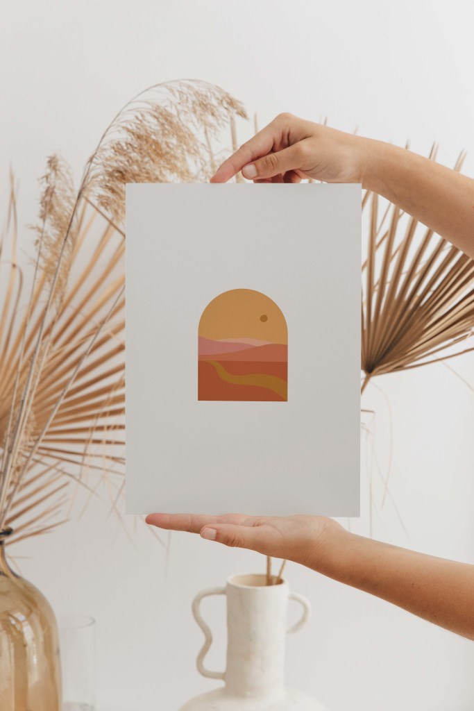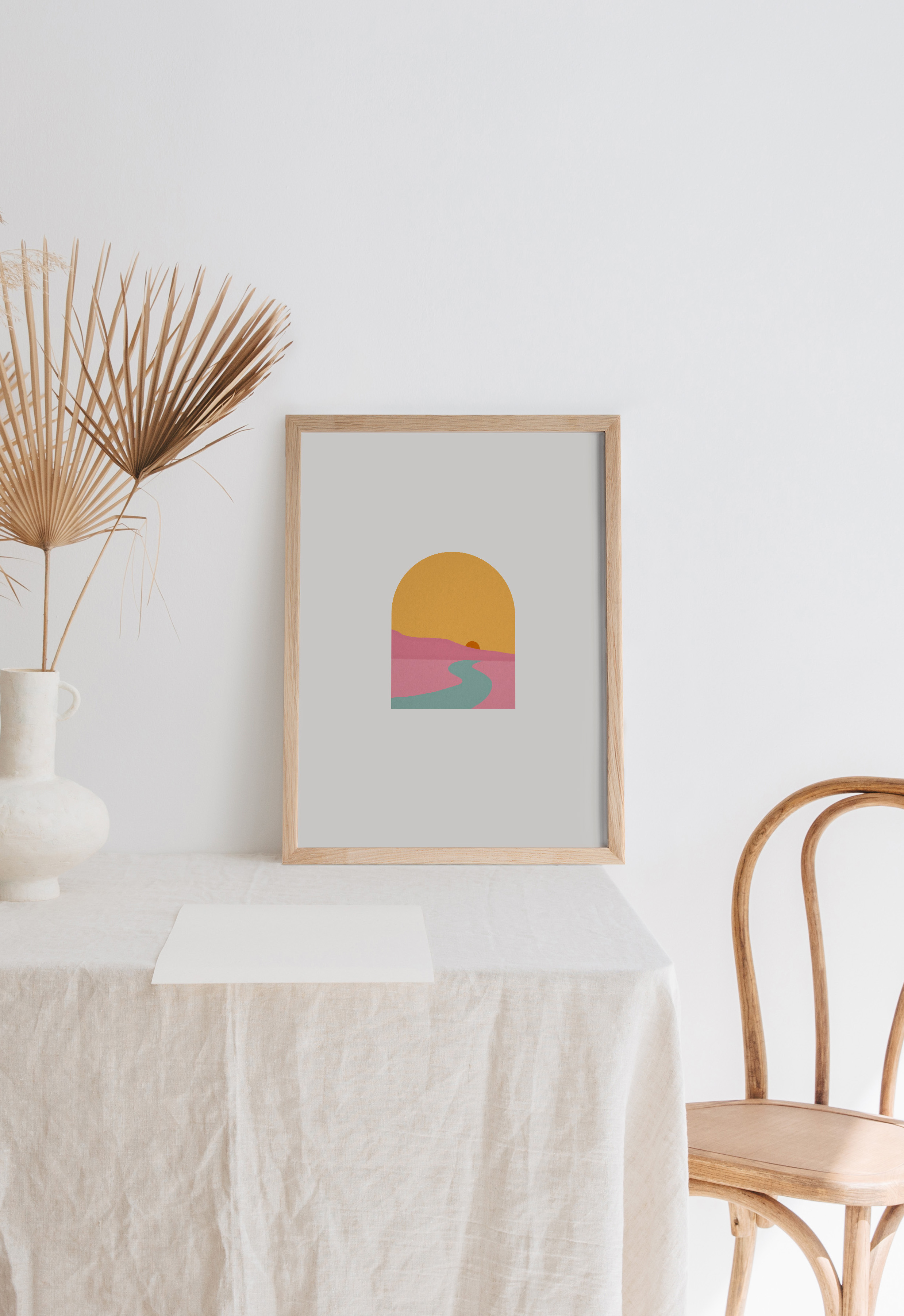 My background in graphic design also inspires my painting in the forms of clean lines and graphic shapes. I started painting as a way to create using my hands and offset all the time spent creating in front of screens. I love blending these two worlds through paint, whether it’s free-handing straight edges or carefully selecting cohesive limited colour palettes.