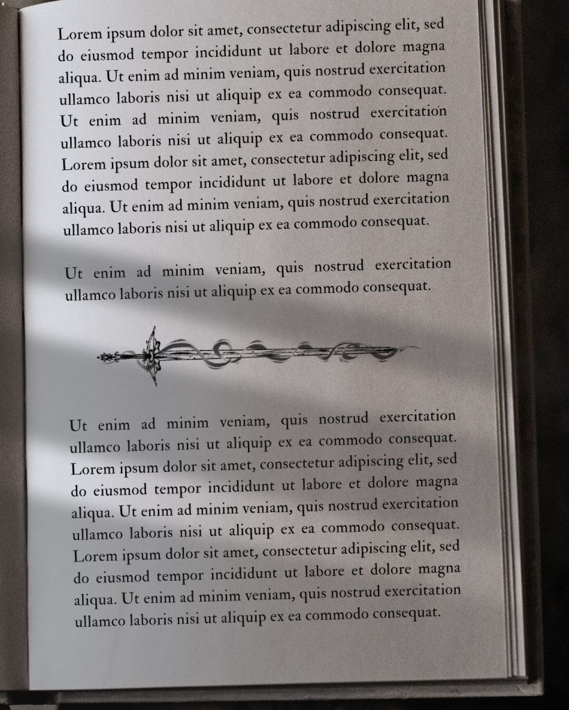 I’ve found myself working on my first project by chance. I wasn’t actively searching to enter the book illustrations since I thought that was out of my reach at the time, and I didn’t know exactly how to start. I remember that one day, I was on Threads, and I posted one of my black and white illustrations, and after a few minutes, I received a request for “book internal art” for a romantasy series. I was quite confused because I didn’t know exactly what this author wanted from me, but I decided to give it a try! Since that moment, the demand exponentially increased and allowed me to decide to see if a freelance career as book illustrator could be a concrete possibility. A year later, I’m now officially a book illustrator. Some from the book community recognized me as the first book illustrator specialized in book internal art. Apparently, not much attention was given to that type of book art, and with my art style, I discovered a new niche in the book community.