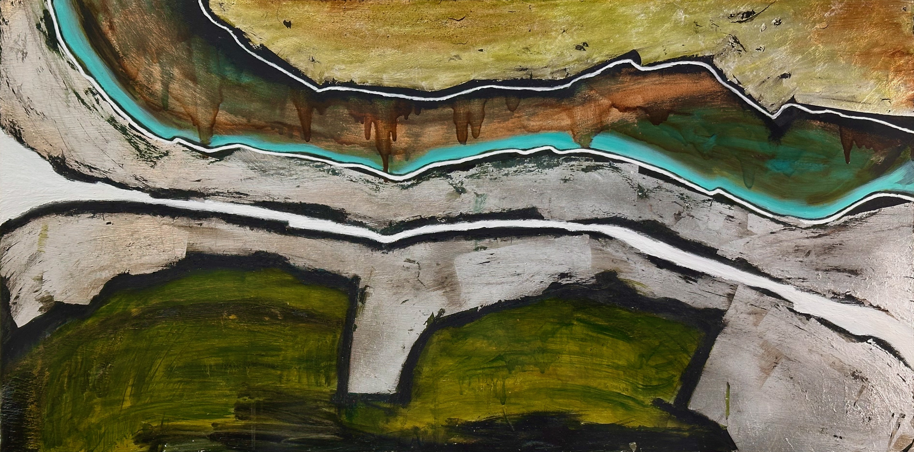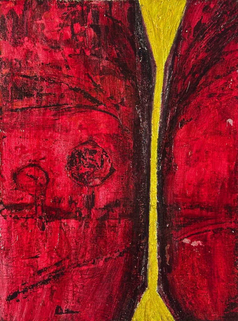 The absolute need to be heard and seen. I’ve felt that my upbringing by a mother who was blind made me acutely sensitive to being ignored and misunderstood through my observation of how she was treated and felt, particularly in social situations. Processing these internalized feelings helped me to find an amazing outlet in the visual arts. In another way, my life has also been driven by two non-crossing paths: the creative (art), and logical/executive function (my background as an engineer). At my stage in life now what matters most is creative expression. This outlet, this expression is a return to my roots. Wood–that’s a material choice that just speaks to me. Traditional canvas doesn’t allow me to easily and physically erase in-progress work. Wood is a more resilient surface and tactile experience. For me a wood surface supports real texture and the ability to rework that texture. For example, there are times I’ll take a power sander to an in-progress painting–it’s a cathartic release!